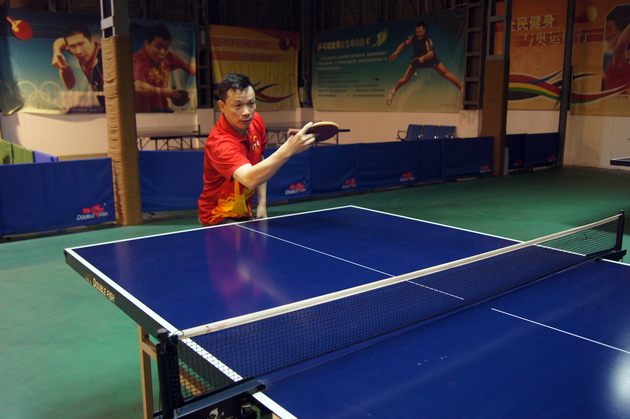 图5、乒乓球友谊赛中,,,,,中国十大娱乐赌博城网址市场总监霍达炎旋转式开球